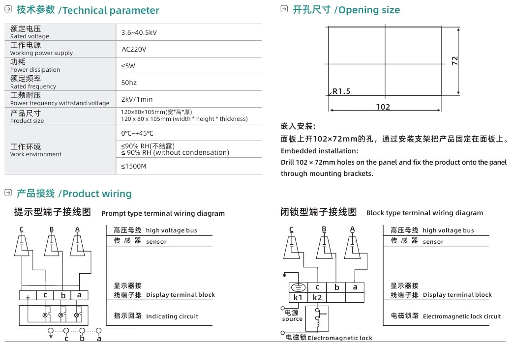 DXN-Q/T внатрешен високонапонски уред за живо прикажување, произведен од Comewill, е специјализиран безбедносен индикатор дизајниран за директна инсталација на внатрешна високонапонска опрема. Користејќи го принципот на индукција на бесконтактно електрично поле, тој обезбедува непосредно, интуитивно визуелно предупредување - трепка кога системот е под напон и останува темно кога е безбеден - за да се заштити персоналот и да се спречи погрешно проценување за време на работењето и одржувањето.